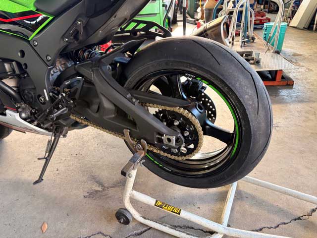 当方ZX10でリア回りはスイングアーム含めまるっとC型で520コンバートしています。